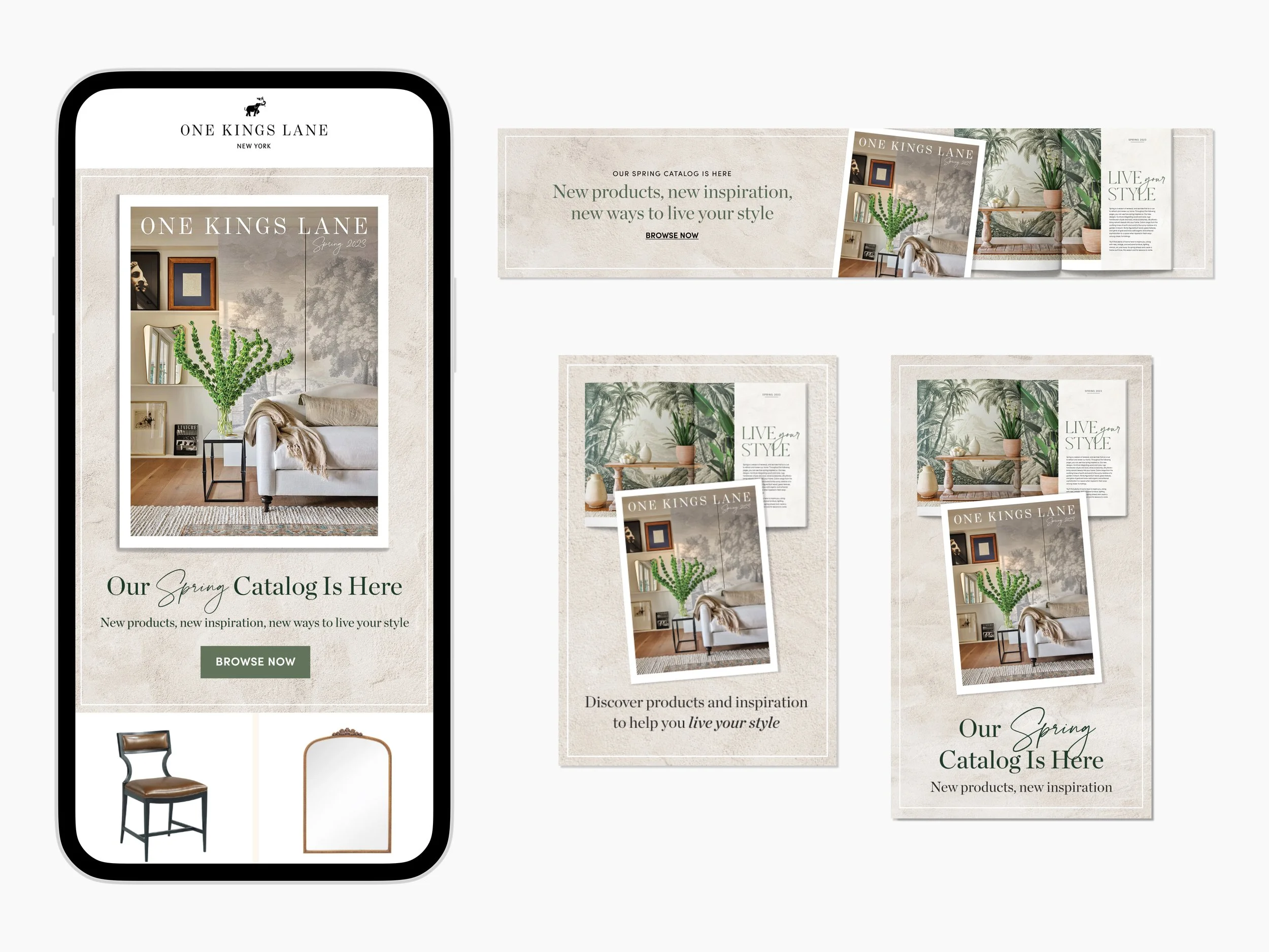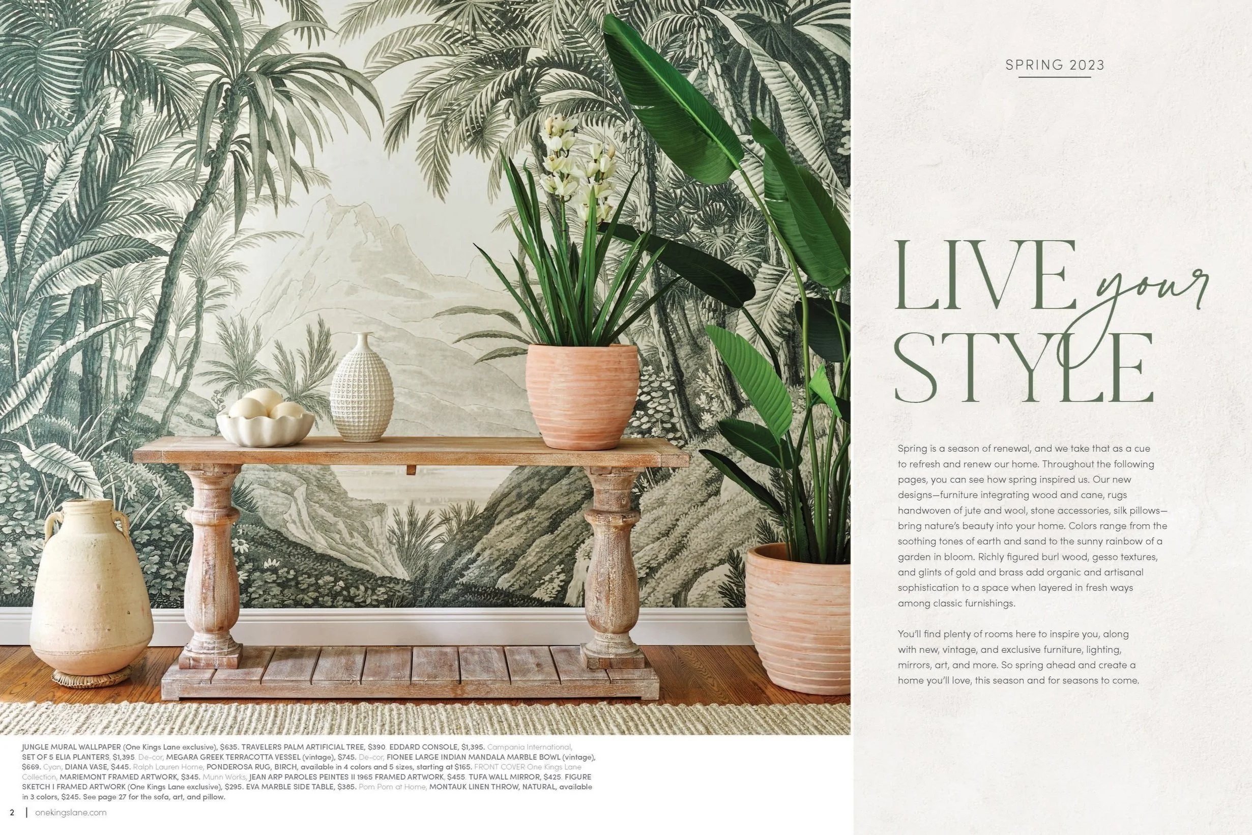 Spring Catalog 2023 ONE KINGS LANE Natural hues and textures paired with elegant fonts for this Spring campaign catalog design and digital marketing assets Slide 1 Slide 1 (current slide) Slide 2 Slide 2 (current slide) Slide 3 Slide 3 (current slide) Slide 4 Slide 4 (current slide) Slide 5 Slide 5 (current slide) Slide 6 Slide 6 (current slide) Slide 7 Slide 7 (current slide) Slide 8 Slide 8 (current slide) Slide 9 Slide 9 (current slide) Animated email Email, site banner and social assets